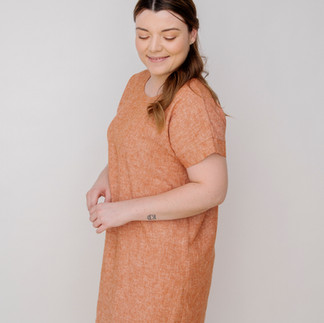 Por otro lado, nuevos tejidos nos acompañan, seguimos esforzándonos en agregar telas naturales y fibras ecológicas que disfruten por su textura y calidad. Esta vez los linos "yarn dye" son los que más se han robado mi corazón por su singular forma de fabricación, que se da tiñendo primeramente los hilos para luego tejerlos y crear patrones que resultan en un aspecto único y artesanal. Esta tela se ha convertido en la primera vista de nuestras piezas en una especie de "estampado" sutil y los colores ladrillo y verde salvia que hemos usado esta vez lucen hermosos.